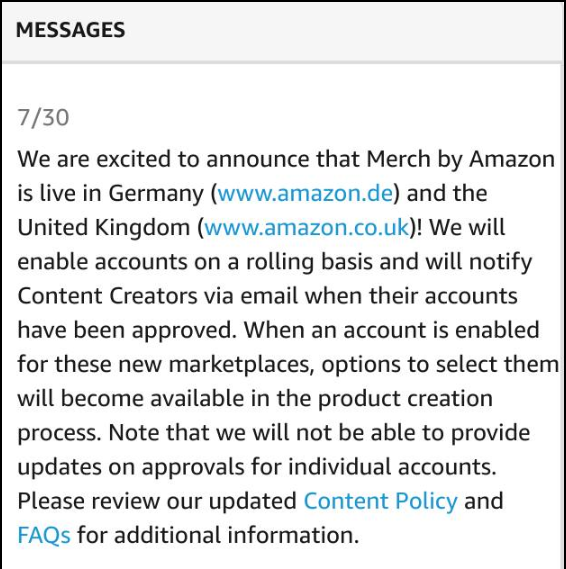 It seems like selected accounts (most likely the highest tiers) are having some of their designs migrated to the European Merch Markets.
